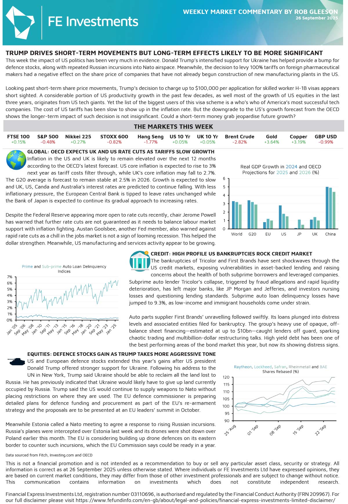 This week there was little reaction to the US government’s shutdown. US equities were part of the global rally in risk assets and US government bonds also gained, as yields fell, as part of the general move up in developed government bond prices. The shutdown and furlough of non-essential staff means, among other things, that there is no monthly update from the federal government on employment, which was due today. As a result, the private sector ADP payroll update, which was out earlier this week, has taken on more importance. The drop in private sector jobs in September is at least partly behind this week’s gains, as a 0.25% cut from the Federal Reserve is now seen as a racing certainty.